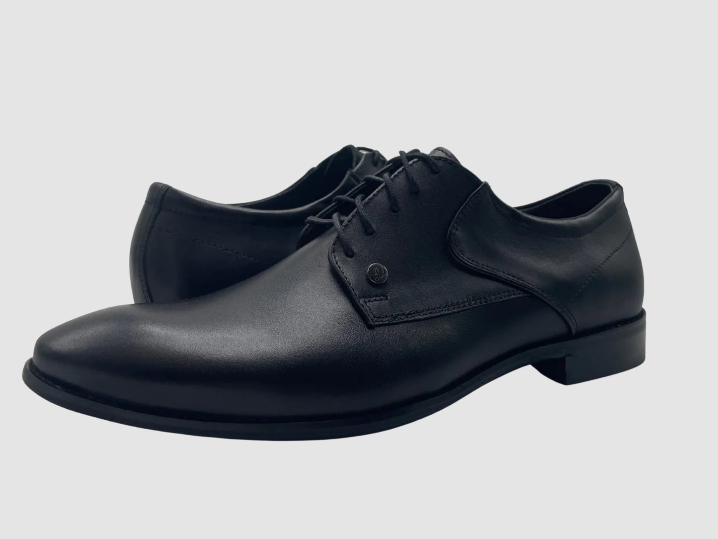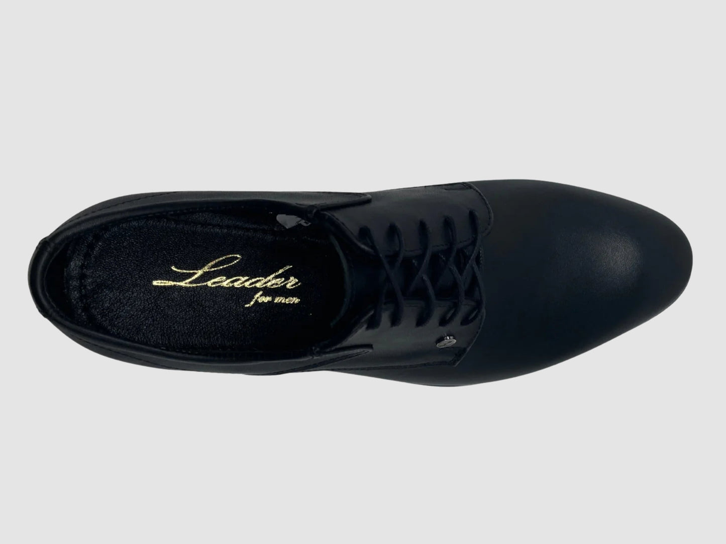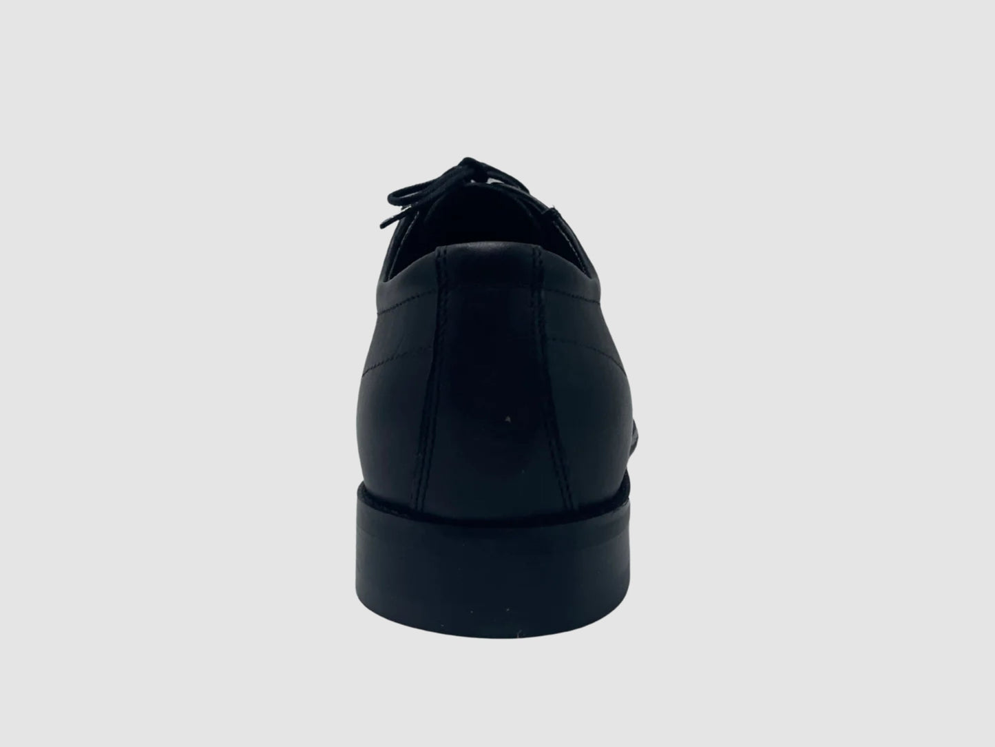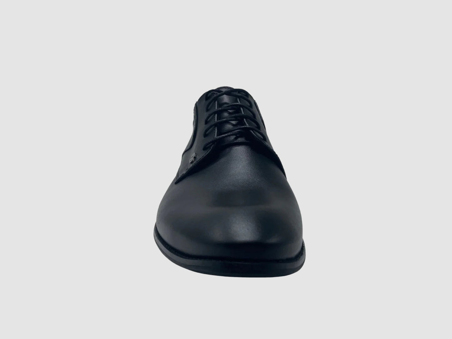The lace-up design allows for a personalized fit, while the sleek silhouette and smooth black leather make the Julian an easy match for tailored suits, dress slacks, or formal attire. Whether you're walking across a presentation stage or out to a dinner, your feet will feel as composed as you look.