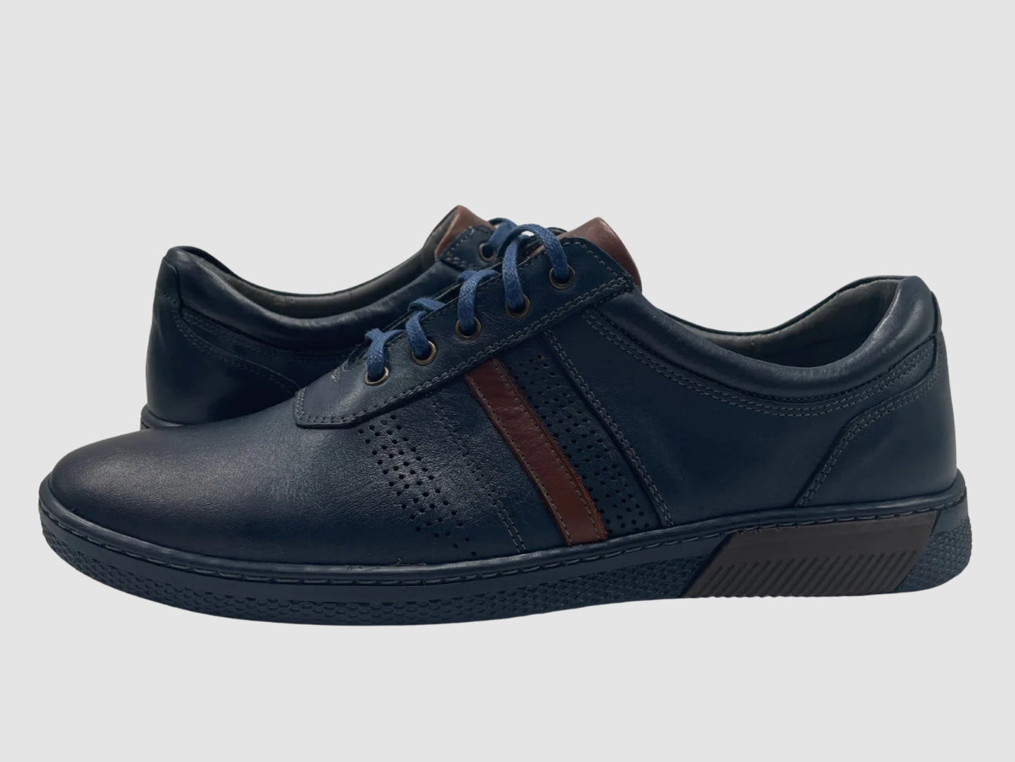 The rich navy tone, accented with a subtle brown stripe, offers a fresh yet timeless look that pairs effortlessly with denim, khakis, or business-casual wear. The durable sole provides dependable traction and flexibility, so you can move with ease from morning meetings to weekend errands.